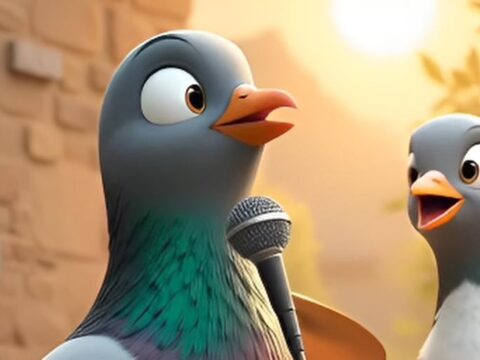 As the sun began to sink low, The golden sky did glow. Rock the Pigeon played, Feathers fluffed, he swayed….