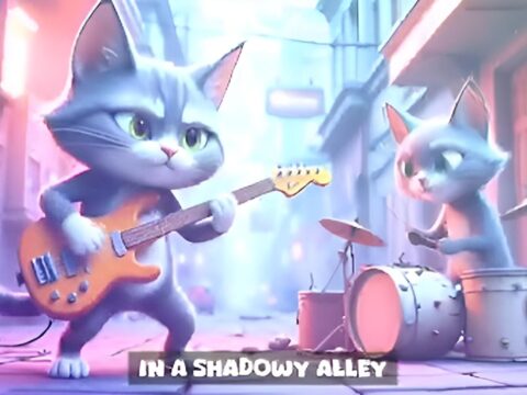 In a shadowy alley, Saber rocked out, so rally. Her whiskers twitched with flair, Electric riffs filled the air. Pigeons…